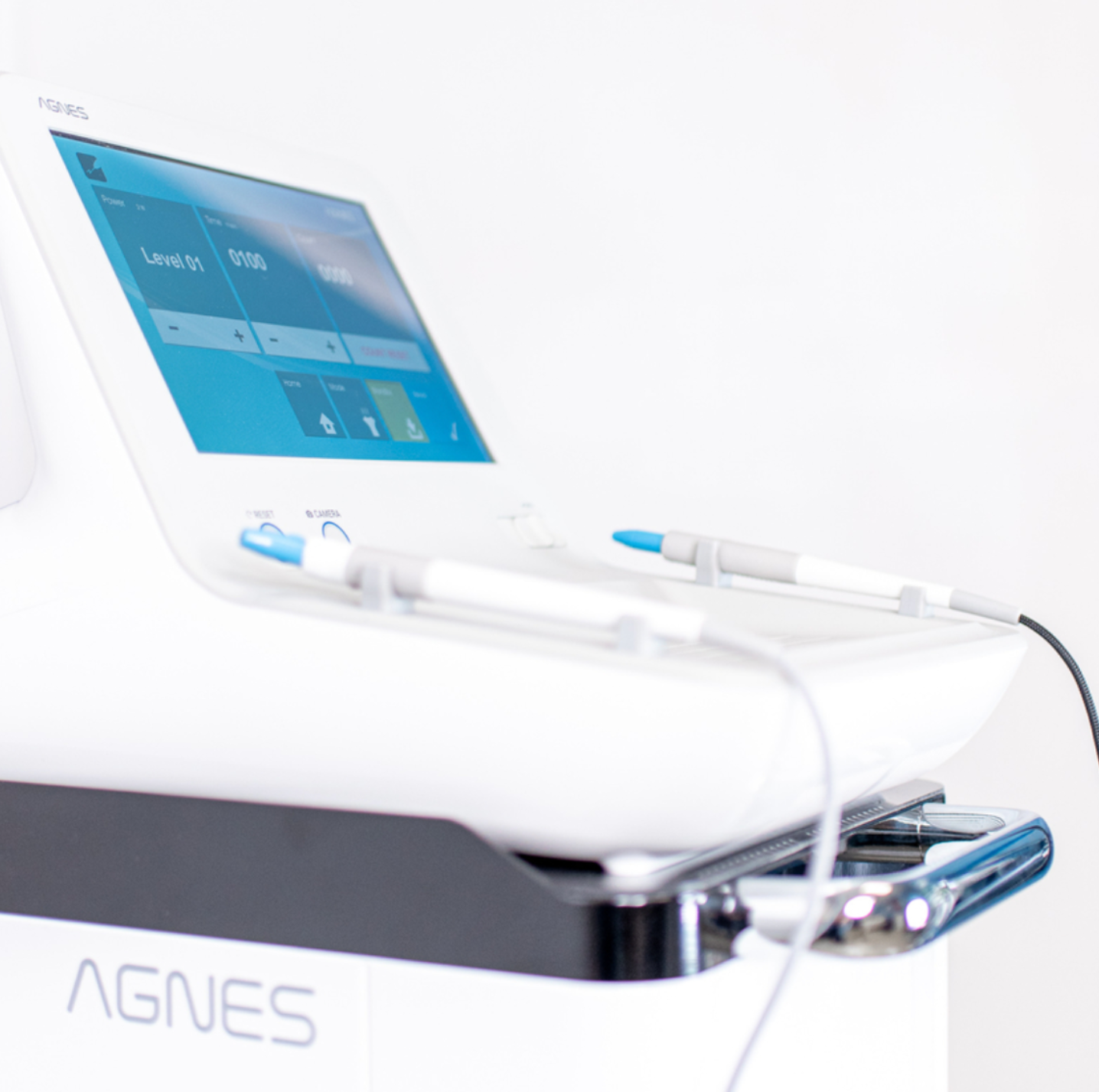 What separates AGNES from other microneedling devices is its ability to offer unparalleled precision and effectively target specific areas for optimal results without affecting surrounding tissue by utilizing radio frequency energy for tissue coagulation and electrothermolysis. Micro-insulated needles penetrate the skin at speciļ¬c points, distributing radiofrequency energy at precise temperatures to generate a tissue response without damaging the epidermis.