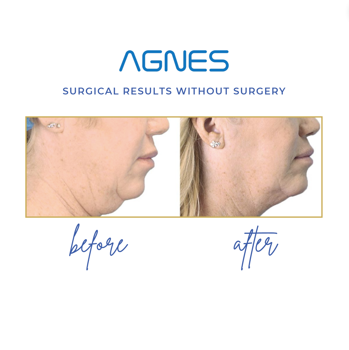 AGNES RF uses thin microneedles to deliver RF energy into the skin, stimulating collagen and elastin growth for improved skin texture and tone. AGNES is unique in its ability to target small pockets of fat that can be present under the chin or other areas of the body.